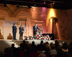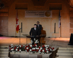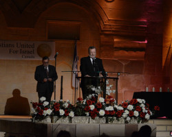 On Tuesday November 25, 2014, Christians United for Israel Canada hosted a candle light vigil for the 4 slain Rabbis and the Druze police officer that were brutally murdered in Israel on November 18th in the community of Har Nof, which is an uncontested region in the western part of Jerusalem. Nearly 500 Christians and Jews gathered for a time of remembrance and prayer as they stood in solidarity against the evils of terrorism and anti-Semitism. All attendees were given the opportunity to sign a Book of Condolences that will be personally delivered by the National Chair of CUFI Canada, Dr. Charles McVety, to the Israeli Knesset.